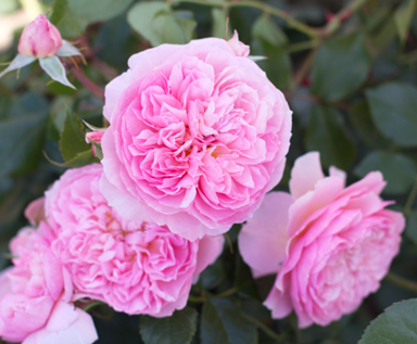 The flower is a fragrant shrub rose with a nostalgic style, which produces numerous layered petals of a pale pink shade, against glossy green foliage.